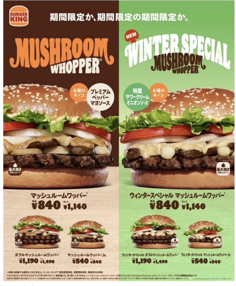 現在、バーガーキングでは通常の「マッシュルームワッパー」と「ウィンタースペシャル」の両方がラインナップされています 。何が違うのか、ポイントを整理してみました。