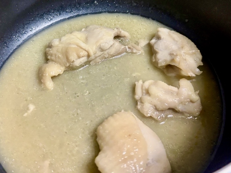 鶏肉に火が通るまで煮ます。